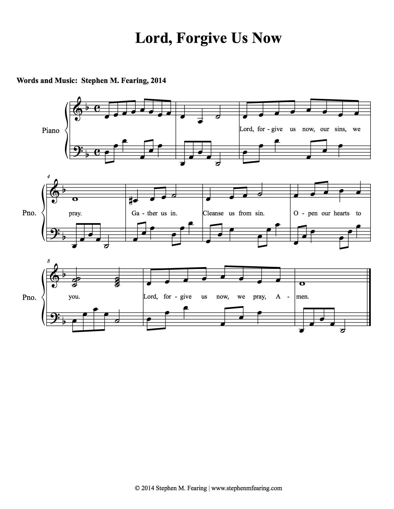 Permission is given for use in congregational worship.  Please give the following credit:  "Copyright 2014 Stephen M. Fearing.  Words and music by Stephen M. Fearing | www.stephenmfearing.com"